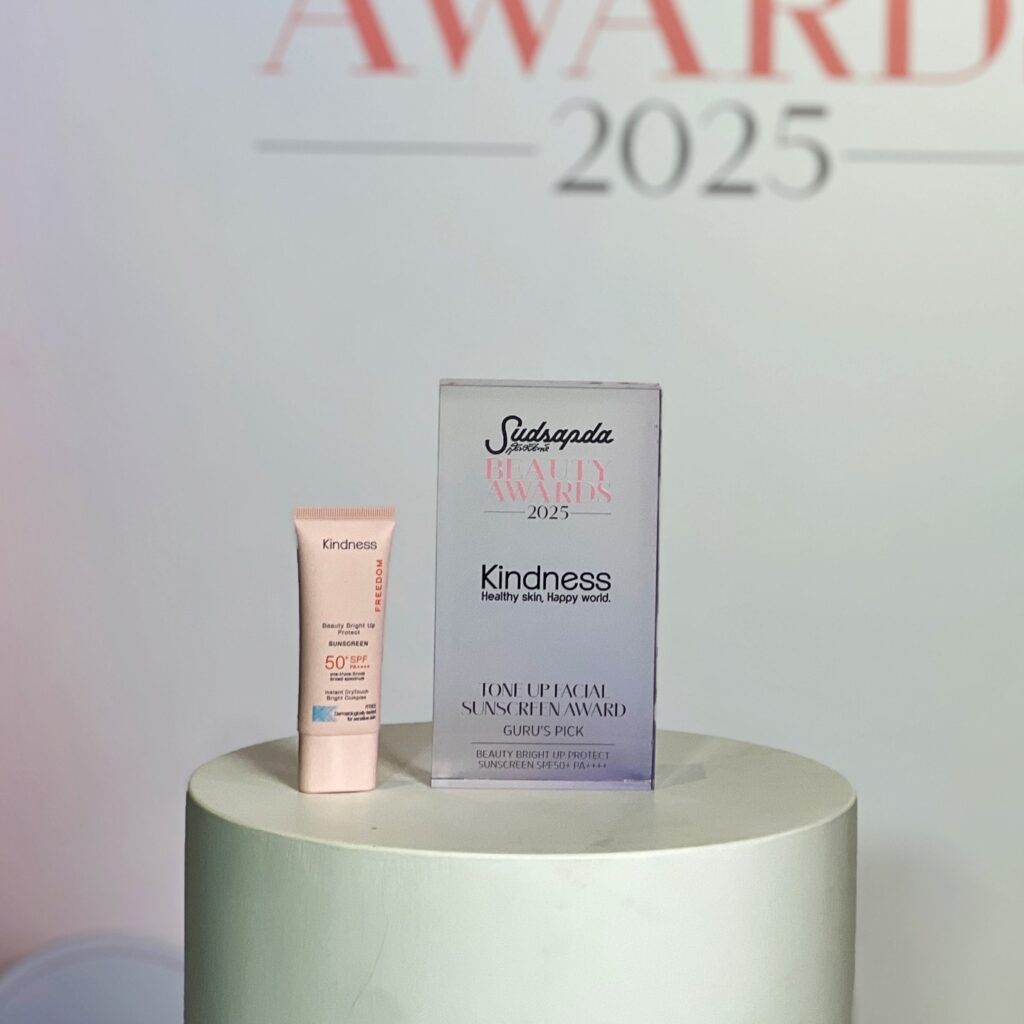 ในปี 2025 นี้ แบรนด์สกินแคร์สัญชาติไทย Kindness ได้สร้างความภาคภูมิใจอีกครั้ง เมื่อผลิตภัณฑ์ Kindness Freedom Beauty Bright Up Protect Sunscreen SPF50+ PA++++ คว้ารางวัล “สุดสัปดาห์ Beauty Award 2025” ในหมวด Guru’s Pick ซึ่งถือเป็นรางวัลที่ทรงคุณค่าที่สุดของงาน เพราะผ่านการคัดเลือกและทดสอบอย่างเข้มข้นจากคณะกรรมการผู้เชี่ยวชาญด้านสกินแคร์โดยตรง
